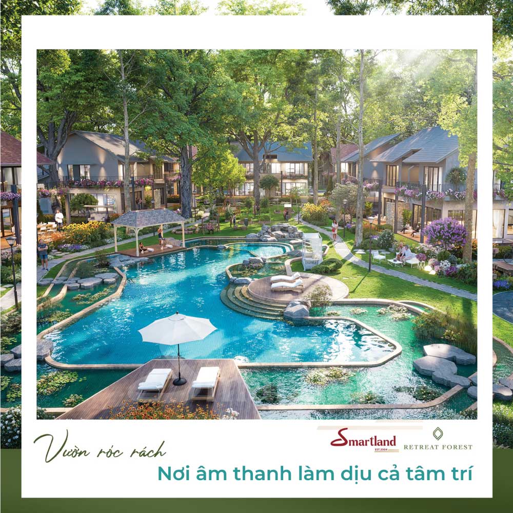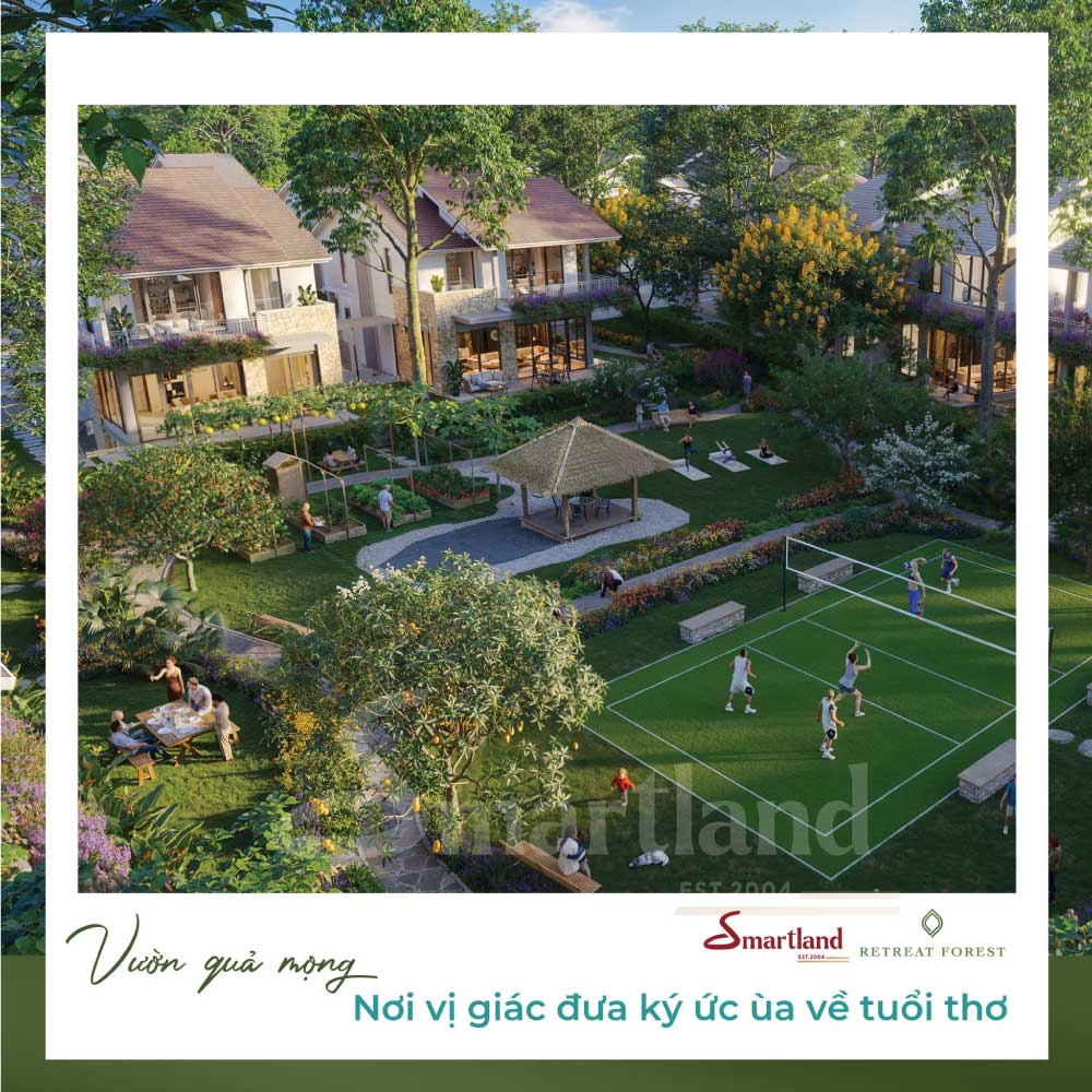 Giữa không gian xanh 56ha, Retreat Forest mở ra 24 khu vườn tiện ích với hơn 135.000m² cây xanh và mặt nước, nơi từng bước chân là một trải nghiệm retreat.