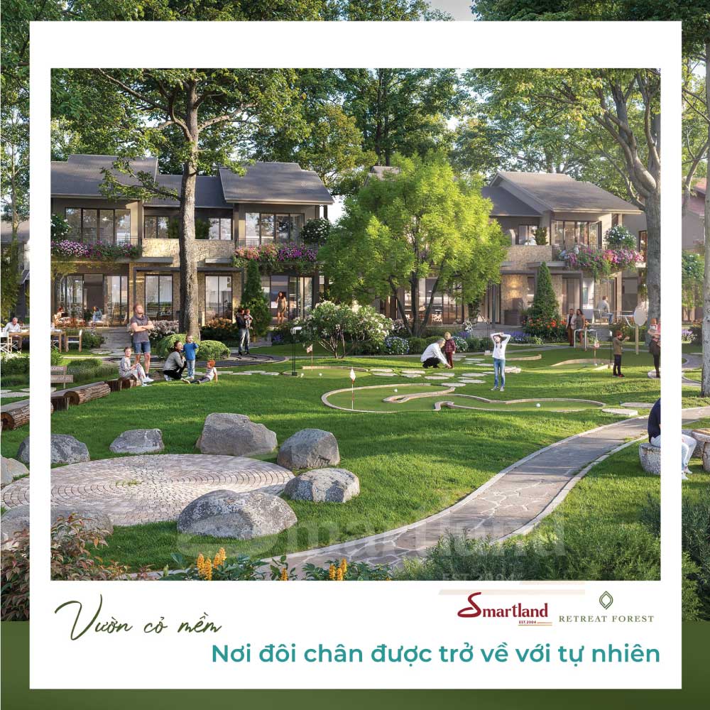 Retreat Forest được kiến tạo như một khu rừng sống thật – nơi con người hòa mình vào thiên nhiên trong từng khoảnh khắc. Lấy cảm hứng từ triết lý “4 hành trình – 4 nguyên tắc – 24 chủ đề”, mỗi góc nhỏ tại đây đều là một trải nghiệm sống xanh: từ túi rừng sinh học đa tầng, vườn rau hữu cơ trong từng căn nhà, đến tiện ích dưới tán cây cổ thụ. Một hệ sinh thái sống chậm, lành và trọn vẹn giữa lòng đô thị.